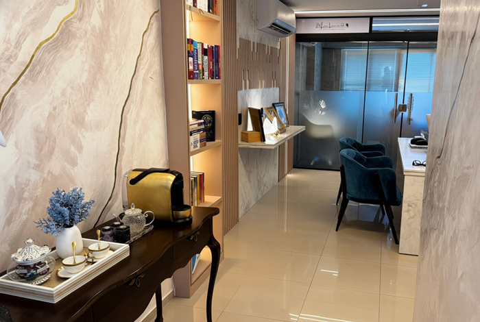 Cada espaço foi planejado para transmitir tranquilidade e profissionalismo, unindo refinamento, iluminação estratégica e detalhes que valorizam a experiência do cliente.